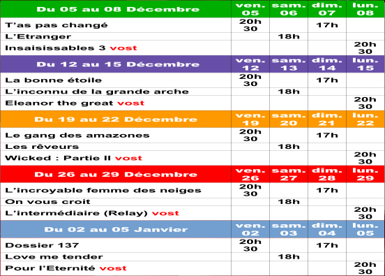 Programme du cinéma l'Etoile en Décembre 2025: